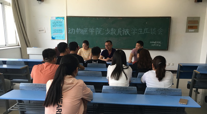 5月9日中午,动物医学院在生工楼A406教室召开少数民族学生座谈会,院党总支副书记张瑞春、团总支书记王宏魁、辅导员樊明明以及部分少数民族学生代表参加了此次座谈会。