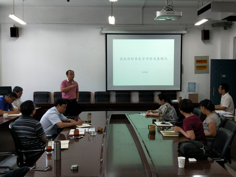 5月31日下午2:30,在龙子湖校区生工组团C401会议室我院徐耀辉博士作了“我国预防兽医学学科发展概况”的讲座。活动由动物医学院副院长宋予震主持,我院教师和部分学生参加了此次讲座。徐博士在报告中首先介绍了预防兽医学科的分类及方向、学科杰出和领军人才状况、国内领先的预防兽医学科研究平台等。随后也与大家交流了国内几个主要知名团队的研究方向和主要研究内容。