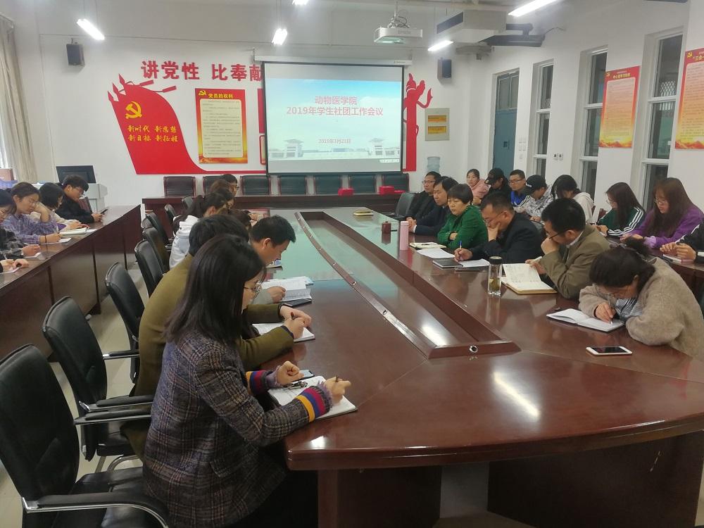 为更好的做好社团工作,3月20日中午,我院在学院会议室隆重召开动物医学院2019年学生社团工作大会。党总支书记王春明出席会议并讲话。党总支副书记张瑞春、团总支书记王宏魁、全体辅导员、社团指导老师以及学生会社团部、全院6个学生社团主要负责人参加了会议,会议由张书记主持。