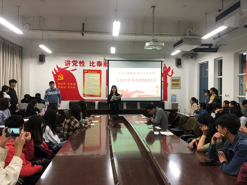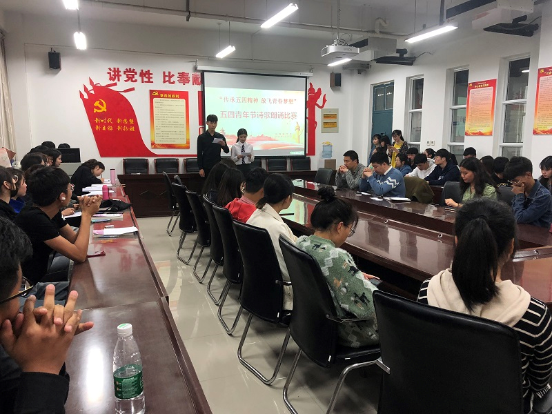 为传承“五四”百年薪火,引导青年学生树立远大志向,肩负历史重任,勇做时代追梦人。4月29日19:00,我院组织学生于c401会议室举行“传承五四精神 放飞青春梦想”五四青年节诗歌朗诵比赛,学院团总支王宏魁、辅导员聂丹、付文凯老师和学生们共同参加了此次活动。