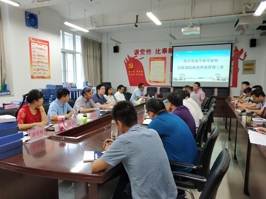 专家组首先听取了副院长宋予震对我院教学档案工作情况的汇报。随后各检查组成员对照档案的建设各级指标,进行逐项详细检查。