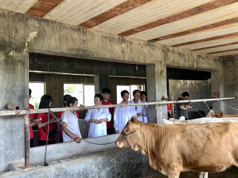 养殖产业是宜阳县董王庄乡前村产业扶贫项目之一,目前该村已有77户贫困户在发展畜牧养殖业,其中新增10户养殖大户,其他还有67家进行零星养殖。到达养殖户家后,养殖户首先给大家介绍了牛场的基本格局,初入牛场的社会实践队员们面对养殖有很多疑问,随后同学们便跟随石院长一起深入牛场,学习养殖和预防疾病的相关知识,对于牛的常见病以及处理方式进行了讨论和学习。经过参观,同学们也发现一些问题,比如,养殖户缺少科学养殖的知识,牛场的规划不够合理以及牛场的卫生安全设施不完善等。同时针对不同时期的饲养管理和应注意的问题等,石院长帮助养殖户制定了切实可行的帮扶措施,同学们一致认为不断的学习科学知识对于养殖业的发展有着至关重要的作用。