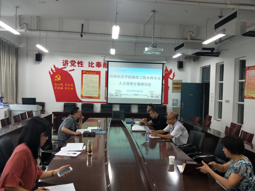 2019年9月4日下午14:30,动物医药学院在生工组团C401召开了制药工程本科专业人才培养方案研讨会,学院院长宋予震、副院长李利红、教学秘书田春霞、吴玉臣以及教研室主任樊克锋、李存法、王笃学、王长林参加了会议。