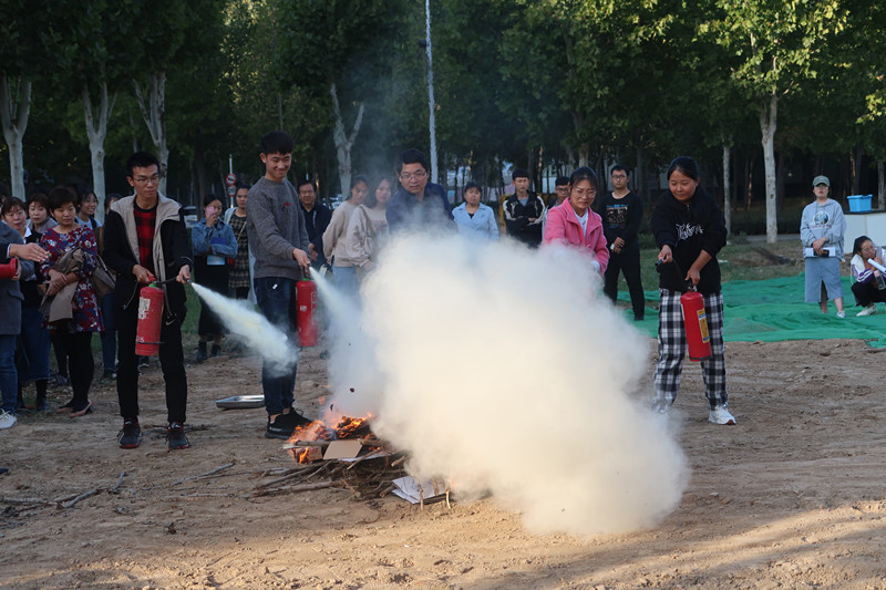 会后,赵教员指导师生在东门开阔区域进行消防器材使用实训操作,部分同学在赵教员的指导下练习了灭火器的正确使用方法。