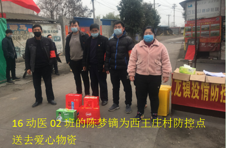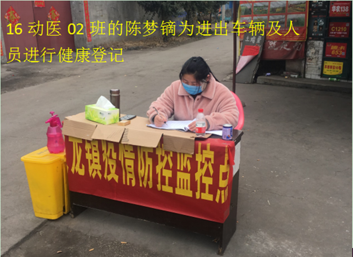 2020年,万万没想到,庚子新年会以这样的方式打开,突发的新型冠状病毒感染的肺炎疫情,时刻牵动着广大党员干部和群众的心。面对这来势汹汹的疫情,她不惧疫情风险,积极投身疫情防控工作,按照基层防疫工作实际需要,切实当好宣传员、信息员、组织员和战斗员,全面筑起疫情防控的“红色防线”。她就是动物医药学院2016级动物医学2班的陈梦镝。