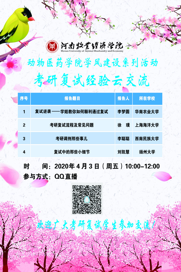 动物医药学院学风建设系列活动之考研复试经验云交流海报