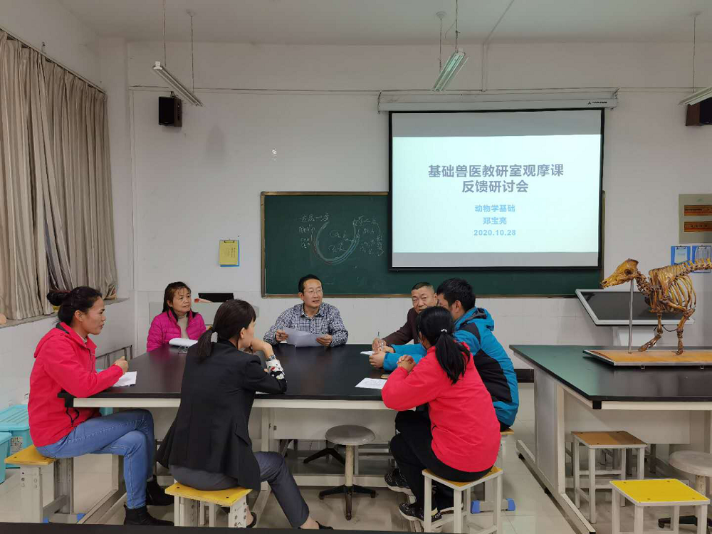观摩课结束后,基础兽医教研室及时开展了观摩课反馈研讨会,听课教师从教学内容、手段、师生互动、教学效果等方面与郑老师进行了充分的研讨交流。本次活动的开展,提供了教师相互学习、相互交流的良好平台,也对提高我院教师课堂教学水平起到了积极的推动作用。