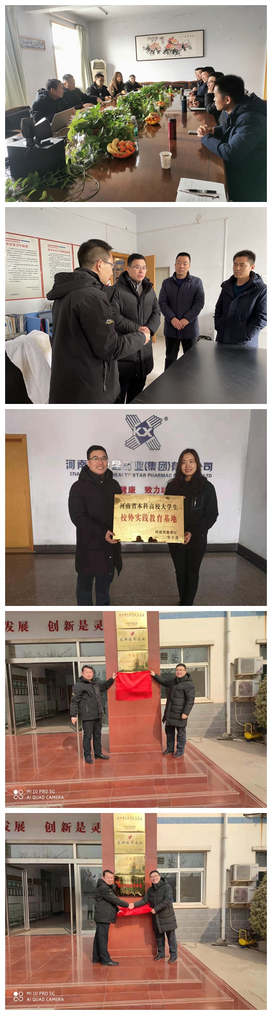 1月22日,动物医药学院党委书记刘永录、院长宋予震、副院长汤法银、吴玉臣一行赴白沙镇参加河南省本科高校大学生校外实践教育基地(新农科专业实习基地)——河南省康星药业股份有限公司授牌仪式并与企业进行座谈。