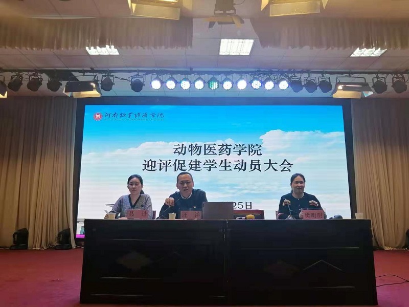 为号召我院全体学生党员及入党积极分子切实起到模范带头作用,以饱满的精神状态迎接本科教学合格评估,3月25日晚上6点,动物医药学院在大学生活动中心召开迎评促建学生动员大会,参会人员有院党委副书记汪洋、团委副书记樊明明、聂丹及全体辅导员老师、全院学生党员及入党积极分子。