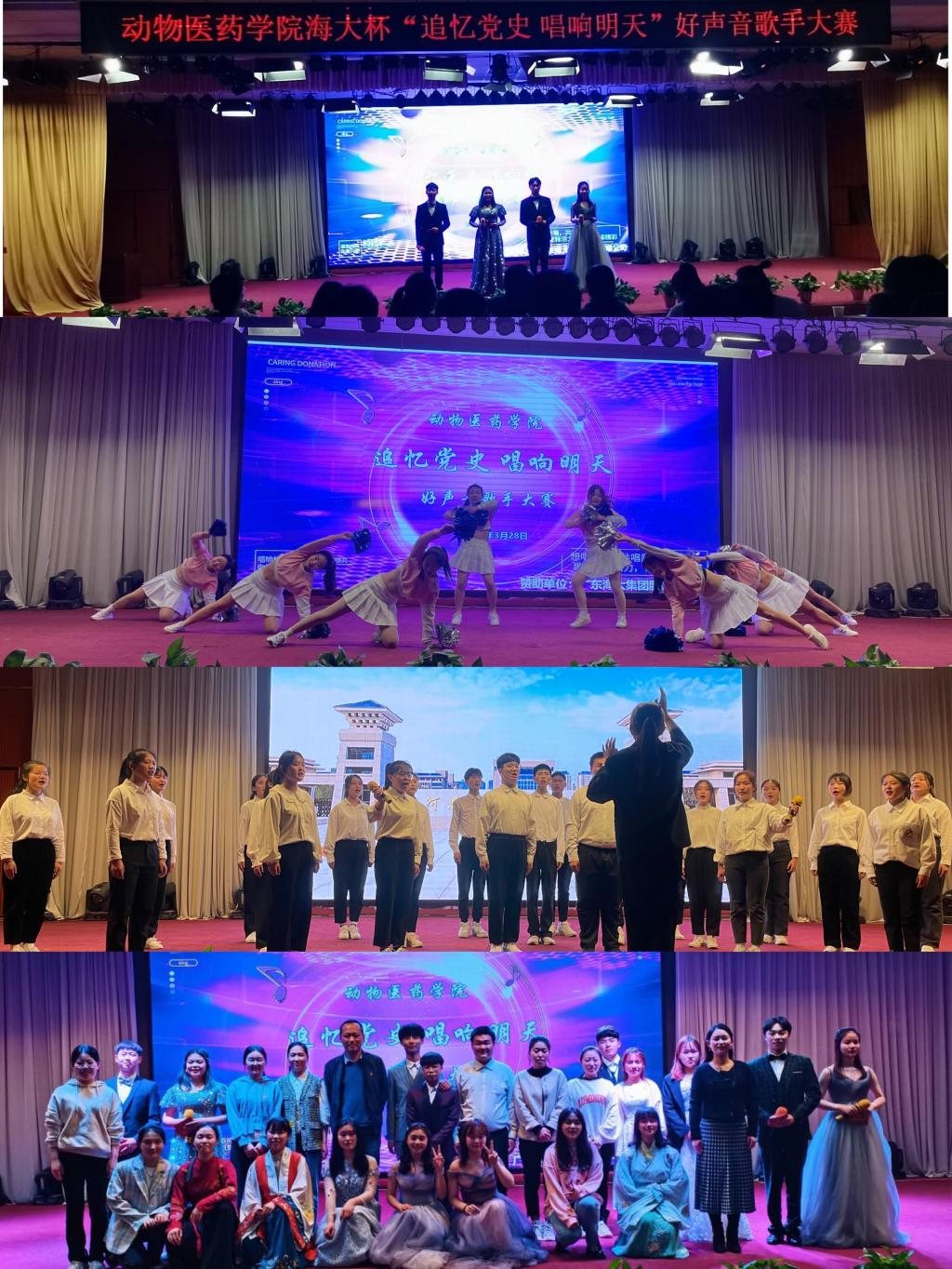 为庆祝中国共产党成立一百周年,丰富当代大学生校园文化生活,营造一个积极向上、健康文明的校园文化氛围,进一步提升我院学子的综合素质,动物医药学院于2021年3月28日晚7点半在大学生活动中心举办海大杯“追忆党史,唱响明天”好声音歌手大赛。动物医药学院党委副书记汪洋、院团委副书记樊明明、聂丹、全体辅导员老师及20级全体学生共同参与。