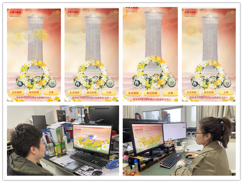 师生们通过登录中国文明网微信公众号,以网上献花祭奠的形式,向献身于民族进步事业的爱国先驱、在黑暗和逆境中奋起革命的先行者致敬;向战胜千难万险用鲜血铸就革命伟大胜利的先辈们致敬;也向在和平年代为维护国家安全、人民幸福而奋斗在抗洪一线、维和一线、抗疫一线的战士们致敬,向一切为中华民族和中国人民作出贡献的英雄先烈们致敬。