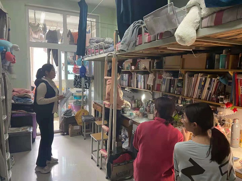 老师们深入到我院每一个宿舍,重点强调了宿舍卫生,用电以及物摆放等情况。对个别卫生差,空气污浊的宿舍提出批评并安排学生干部督促他们搞好宿舍卫生,老师们也会不定期前来检查打扫情况;对干净整洁,空气清新的宿舍,老师们提出了表扬,并鼓励他们继续保持。樊老师强调,学校迎评在即,希望每一个学生都能意识到迎评工作对学校、对自身的重要性。我们应该积极行动起来,提高自己的思想站位,以“校荣我荣,校耻我耻”的态度,努力营造良好的宿舍环境和文化氛围。