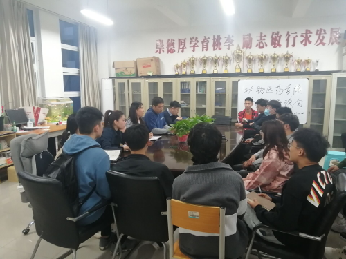 4月17日晚上7点,动物医药学院在善知楼A323召开毕业生座谈会。院团委副书记樊明明、聂丹和辅导员康宇、谷茜茜、付文凯共同出席了会议。