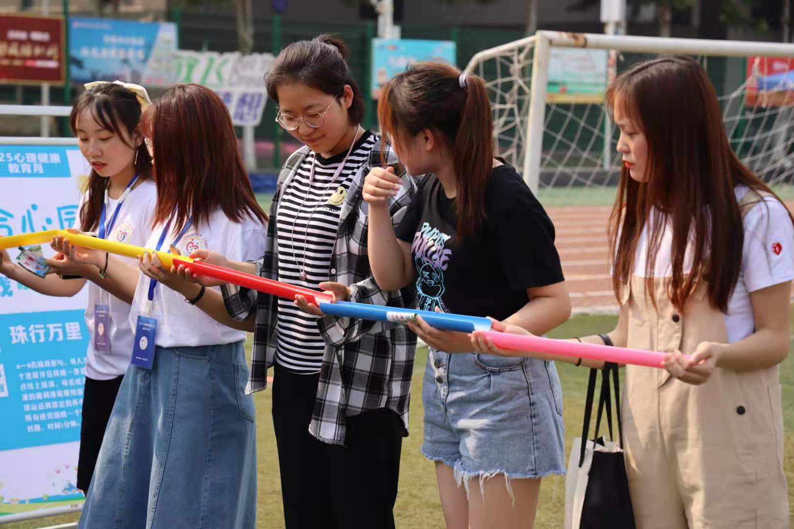 启动仪式上,首先由张颖主任宣读了《河南牧业经济学院关于开展2021年“5.25”大学生心理健康教育月活动的通知》,随后动物医药学院党委副书记、心理健康教育二级工作站站长汪洋、文法学院赵帅飞同学作为教师与学生代表分别发言,最后杨志清校长作了重要讲话。启动仪式结束后,心理游园会正式开始。本次游园会共设置十个主题园区:平心园、同心园、齐心园、合心园、欢享园、智勇园、竞速园、辩声园、探秘园、谈心园。各园区设有裁判、辅导员或心理咨询师进行项目指导,每一个项目或通过双人竞技,或通过团体合作,或通过心理测评,或通过与心理专家面对面沟通等形式,在科学测量中、在竞技运动中、在倾诉沟通中收获自我认知、感悟团结力量、增强自助与互助意识、释放生活压力、提升心理品质。大家争先恐后去体验各个园区的活动,田径场成了一片欢乐的海洋,不时从各个角落传出同学们的欢笑声。