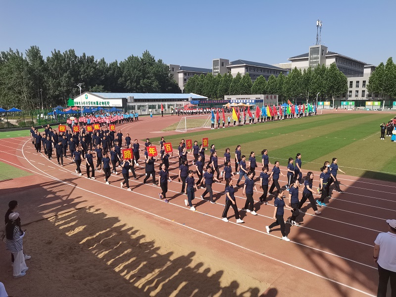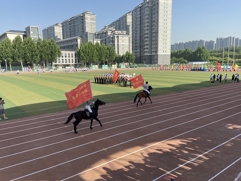 运动会开幕式上,欢声雷动,彩旗飘扬。动物医药学院学生方队作为河南牧业经济学院代表队中的一支,骑马亮相,轰动全场,大家纷纷表示这种方式既新颖又彰显了学院特色。教工代表方队,精神抖擞,高喊“发展体育运动,增强人民体质”的口号,彰显出我院教职工积极向上的精神风貌。