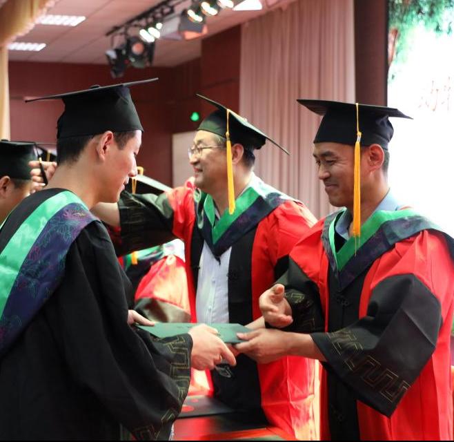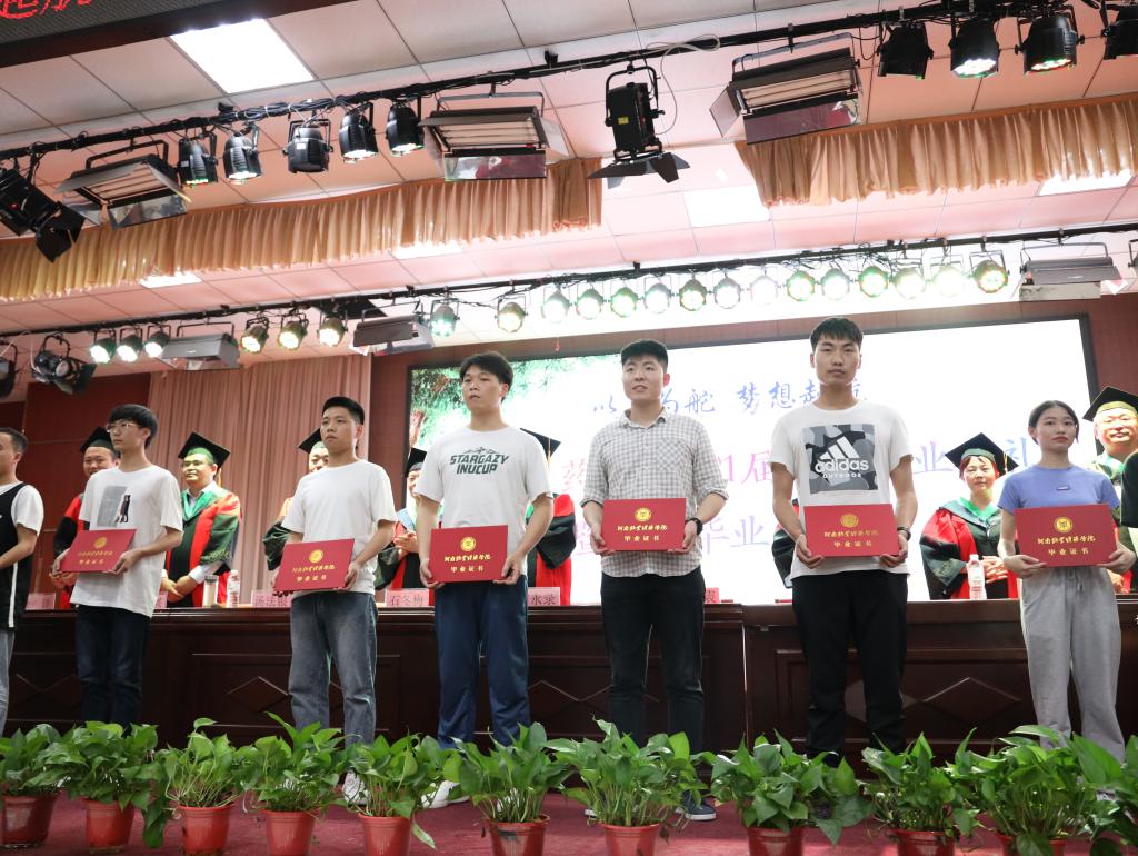 与会领导老师为专科毕业生代表颁发毕业证书