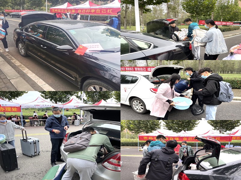 比太阳起得更早的,是准备着迎接新生的学生志愿者和老师们。本着“以人为本、优化环节、加强服务”的原则,学院在学校西门和南门设立报道点,由老师和学生志愿者为大家办理报到手续,协助新生搬运行李、指引道路。