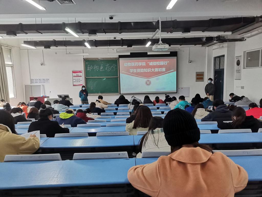 为进一步宣传学生资助政策,普及金融基础知识,培养大学生的诚信意识和观念,增强大学生金融风险防范意识和金融安全知识,促进诚信校园建设。动物医药学院于11月21日中午在合201、合202举办了2021年“诚信校园行”学生资助知识竞赛初赛。此次竞赛面向我院全体学生,共有150名学生踊跃参赛,由辅导员赵赫老师和部分学生会干部监考。