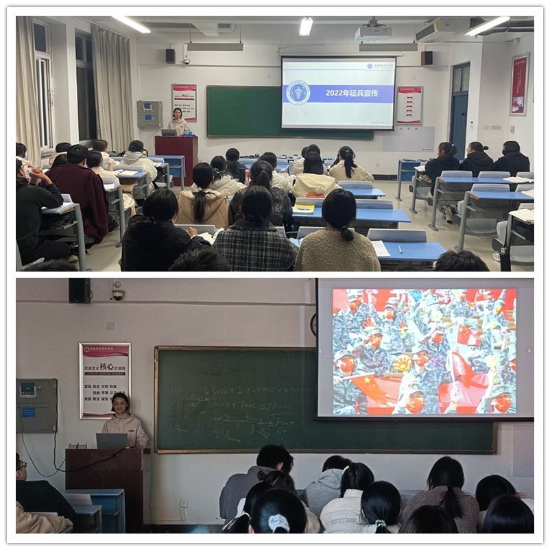 为宣传国家征兵政策,进一步增强学生参军入伍的热情,强化学生保家卫国的责任感和使命感,11月30日至12月2日,学院邀请孙逸冰、武佳露、郭恒民、谢庆、杨宇、陈家霖6位退役复学大学生,深入21级各班开展征兵政策宣讲活动。
