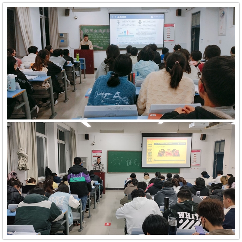 退役复学大学生们从征兵时间与对象、征集入伍要求、应征入伍的基本程序、入伍的相关优惠政策及资助、经济补助待遇等几个方面进行了讲解。随后,他们结合自身的入伍经历,各自分享了自己当初选择入伍的原因,在部队的充实生活,退伍时的依依不舍和参军后的变化等。他们用自己的所学、所感、所悟为在场同学们表达了新时代青年投身强军兴军伟业的使命担当。最后,他们呼吁大家积极携笔从戎,在军营里绽放青春,报效祖国。