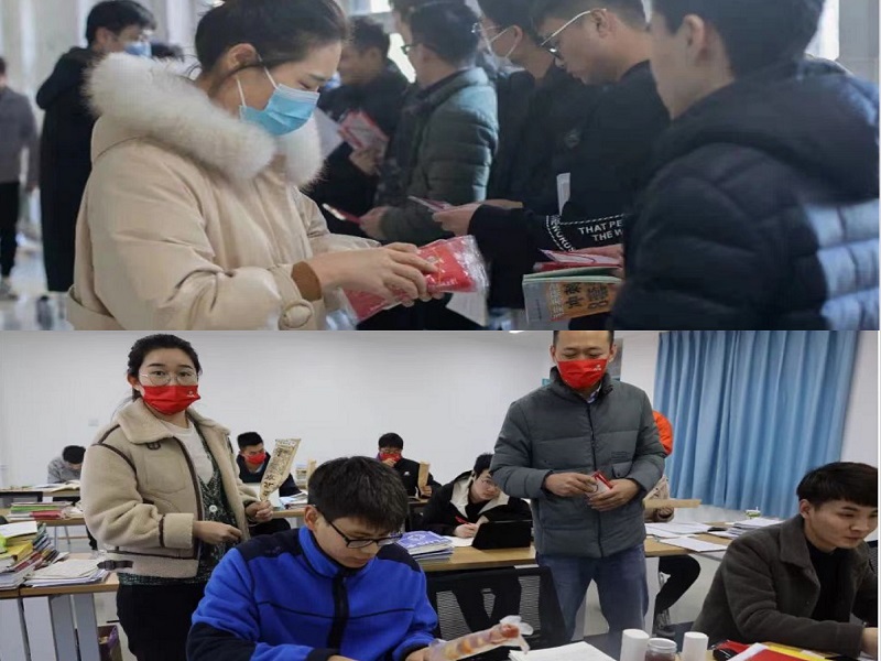 考研临近之际,为鼓励考研学子增强备考信心、缓解备考压力。12月2日,动物医药学院党委副书记汪洋、团委副书记樊明明、团委副书记聂丹和各毕业班辅导员去往考研自习室、宿舍、教室亲手为408位考研学子送去“考研加油包”。