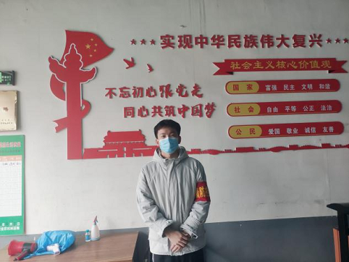 我是20制药01班的王铮,2021年12月31日,洛阳市发现2例无症状感染者。作为一名入党积极分子,我立刻向所在社区申请,成为了一名志愿者。在社区的安排下,我的工作主要是在洛阳市西工区状元红路农贸市场的卡点值班。作为社区人流量最大的地方,我认真对出入人员进行信息登记,体温测量,对不戴口罩的人员进行劝返,同时宣传国家防疫政策。这期间下了一次大雪,看到环卫工人在艰难的清扫积雪,我毅然拿起铁锹,随着越来越多的人加入我们,不一会,路面就厚雪就被铲完了。志愿工作虽然辛苦,但作为新一代青年,我有责任为疫情防控奉献自己的一份力量。我相信,众志成城,战“疫”必胜!”