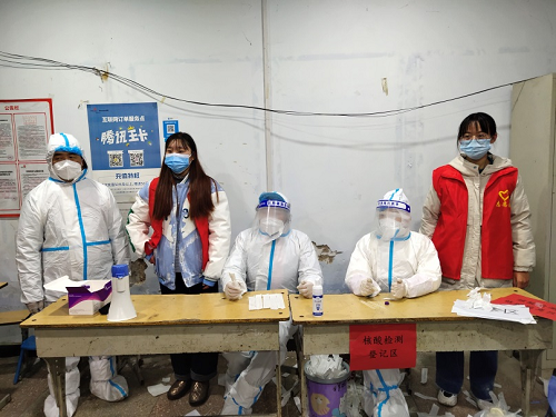 我是来自21动药02班的张亚琪,家住本轮疫情严重的河南省禹州市。当得知禹州出现疫情,1月3日起,我便开始在我的家乡——方山镇方山村作为志愿者在核酸检测采样点维持秩序、扫描采样码、登记信息等。截至目前,禹州疫情还未彻底结束,有时我会在村口卡点协助工作人员对来往车辆和人员进行信息登记、测量体温等。希望禹州疫情在大家的齐心协力下能够尽快的得到控制,在过年前实现解封。