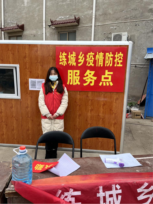 “用担当谱写人生,用行动践行初心。”钱梦薇是18级动检班的一名党员,因为家乡漯河,紧邻疫情高风险地区,抗疫防控工作不容疏忽。返乡后她积极响应家乡疫情防控领导的号召,报名成为防控志愿者,她负责在村口防疫指挥棚中值守,对外来人员进行体温测量,扫码信息登记,帮助返乡人员查看健康码、行程码、核酸报告电子版等信息。志愿服务中的她,对人生和初心有了更深刻的认识。