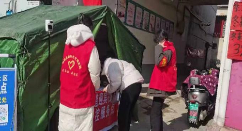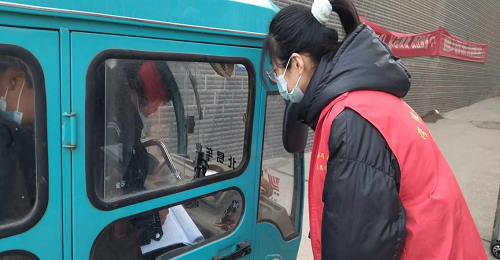 自1月15日,21动医04班的张宝樱在家乡河南省商丘市宁陵县开展疫情志愿工作,与其他志愿者一起对该小区进出的车辆和人员进行排查登记,记录人员出入时间和每日每户的出入次数,确保本小区安全。她说:“虽然有板凳可以坐,但大家都是流动的,所以基本上都是站着。尽管每天都很冷,但是为人民服务是我应该做的。”