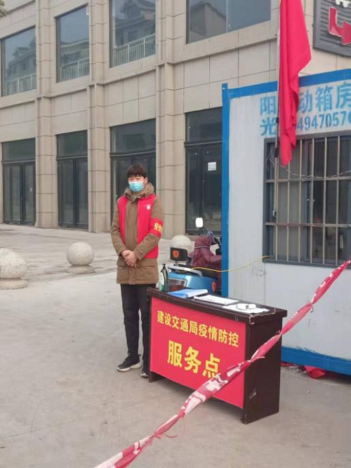 在河南省平顶山市石龙区圣德小区的关钜恒也是来自21动医04班的一名学生,身为志愿者的他每天早上八点到下午四点,在疫情防控站口帮助小区登记进出人员,并协助工作人员做好管控工作。他说“尽管这个冬天很冷,在室外值班的我们每次都会被冻僵双脚,但是我们每个志愿者的内心很充实,我们的热情让我们不惧严寒,我为我自己勇于做志愿者而骄傲。”