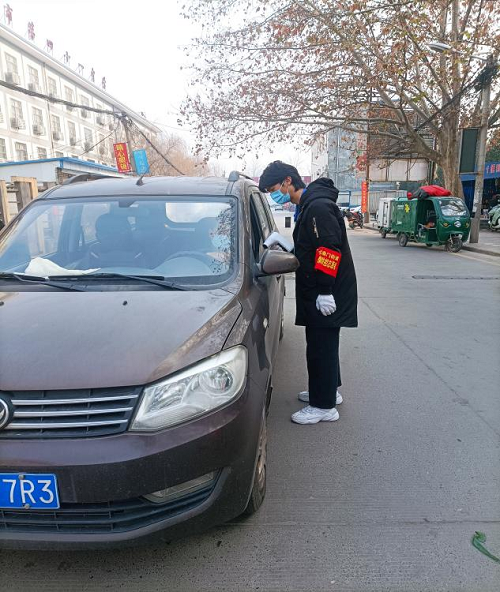家住洛阳市洛龙区安乐镇水磨村的杜云龙是我院20动药01的一名学生。2022年1月6日,作为一名入党积极分子的他,响应国家号召,第一时间申请疫情防治志愿者。在定鼎门办事处的安排下,他被安排在水磨村村口卡点处,对过往的行人车辆登记,测量体温,以及查看相关人员的行程码。“疫情防控一线高高飘扬的党旗充分体现了党员的先锋模范作用和党组织的战斗堡垒作用。愿疫情早日结束,洛阳加油 河南加油,中国加油!”杜云龙如是说。