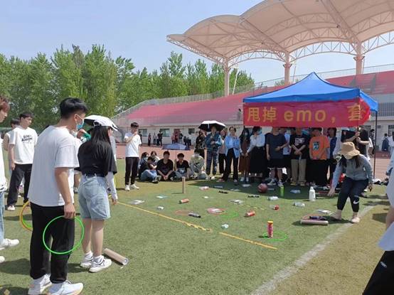 通过此次比赛不仅能提高大学生身体素质水平和同学们的学习兴趣,树立优良的大学生形象,激发同学们的团队协作能力和竞争意识,同时也能在疫情期间丰富同学们的大学生活。此次活动一共有8个小游戏。在活动现场,每一位同学都将带上自己的小伙伴一起切身感受到游戏所带来的快乐和满足感,与其他小伙伴比拼,考验伙伴间的凝聚力的同时也磨练了大家的意志。最后,活动奖励是由同学们参加各个小游戏赢得套圈,通过套圈套取奖品,甩掉emo,套出快乐。