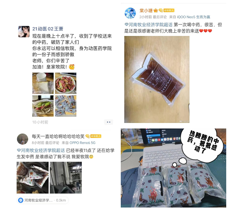 咚咚咚...半夜了,是谁在敲门啊?——嘘,别怕。是辅导员老师们来给你们送防疫“外挂”啦!呀!还是热的,谢谢老师,您辛苦了...尽管夜已深,但辅导员们尚未离去,用自己的实际行动关爱着同学们,始终与同学们同在。