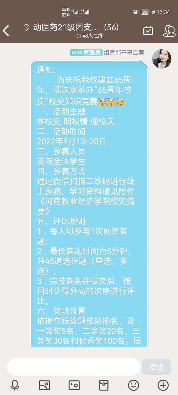 通过此次校史知识竞赛,同学们对学校的创业历程,发展历程,提升征程,跨越阶段有了进一步的了解学习。同学们将“校兴我兴,校荣我荣”,深深地记在心中。同时,通过举办校史知识竞赛,使同学们感悟了学校底蕴,激发了爱校情感,使知校、爱校、荣校、兴校情怀逐渐成为同学们的自觉行动和精神追求,有助于增强莘莘学子的责任心和使命感,共同谱写牧院未来更加辉煌的篇章!(文/图 关兵峰)
