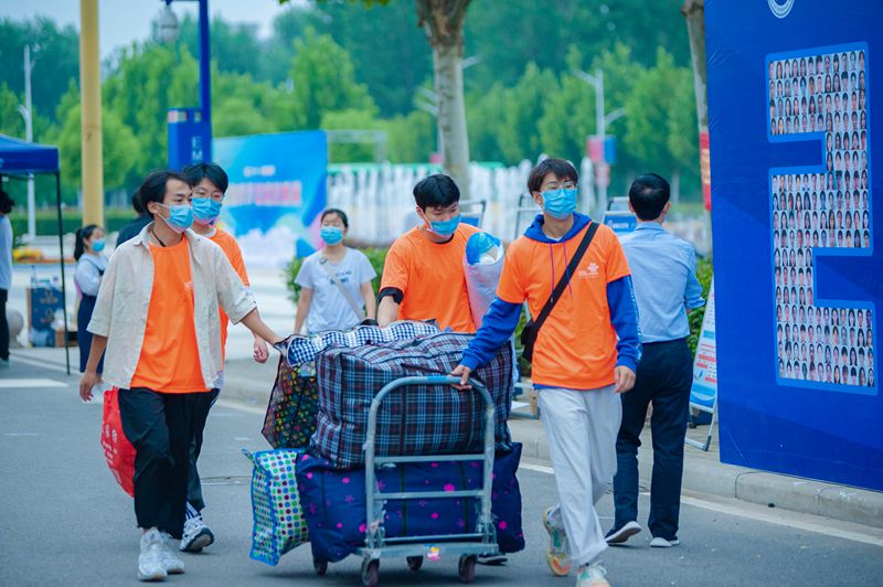 早上6:00,各新生班辅导员、助理班主任和志愿者们早早就位,翘首以盼新同学的到来。校园里,鲜艳的迎新条幅随风飘扬,一顶顶红色的迎新帐篷整齐摆放,随处可见醒目的指示路牌,翠绿的摆渡车往返不停,身着“橙衣”的志愿者暖心护航,处处洋溢着热烈喜庆的氛围。上午9:00,校党委副书记李俊杰来到我院迎新现场,查看迎新工作情况,院党委书记刘永录介绍我院迎新特色。