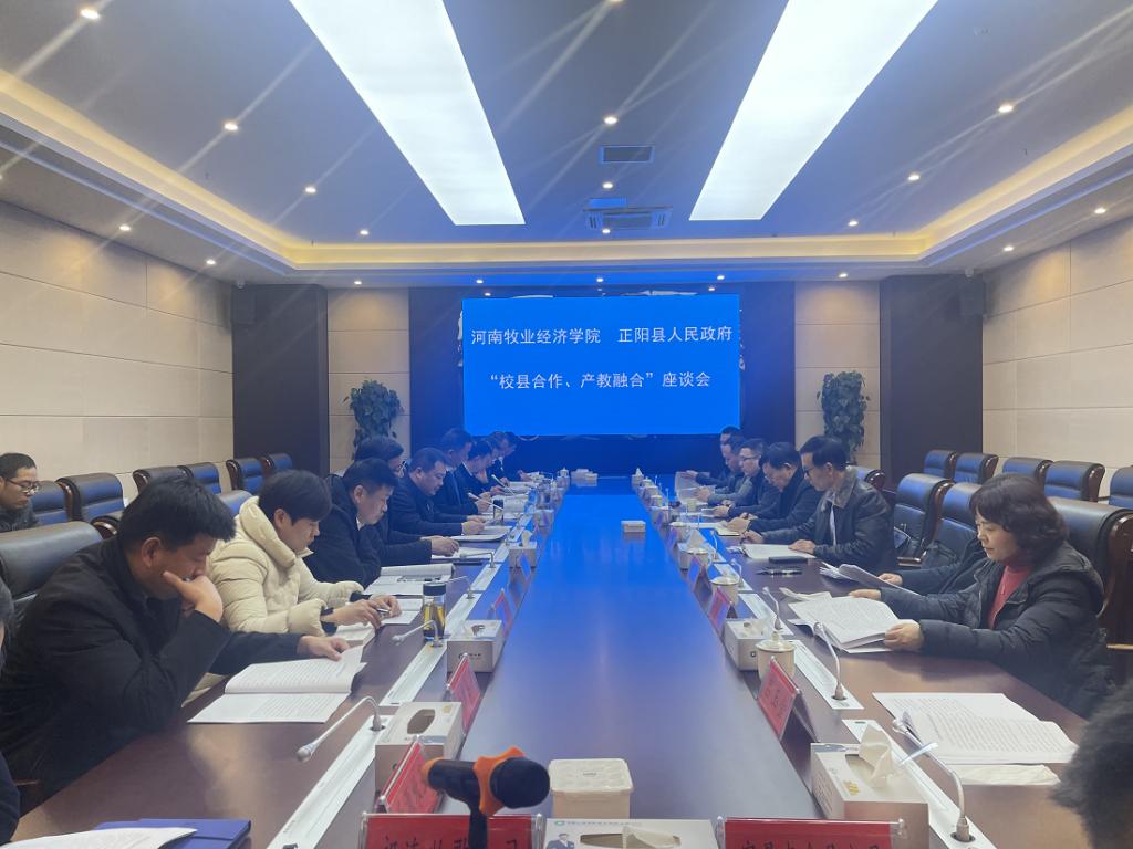 2月24日,校党委副书记李俊杰带领动物医药学院党委书记刘永录、院长宋予震等一行前往正阳县,看望挂职干部汤法银。正阳县县委对李书记一行的到来表示热烈欢迎,并在县文体中心政府会议室召开了“校县合作、产教融合”座谈会。正阳县委副书记、县长刘磊出席会议并发表致辞,副县长汤法银主持会议,县政府办、农业农村局、县乡村振兴局、县科工信局、县畜牧中心负责人及部分企业负责人参加会议。