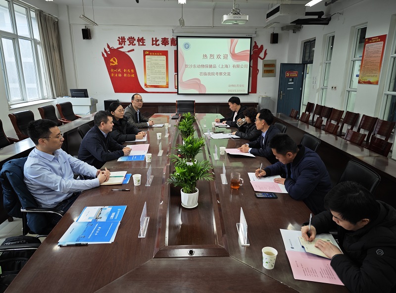 3月1日下午,默沙东动物保健品(上海)有限公司全国销售经理杨万刚、市场部产品经理宋志强、高级销售经理陈守阳、市场专员吴倩一行来动物医药学院考察交流,洽谈合作事宜。学院党委书记刘永录、副院长李利红、吴玉臣、科研办公室主任李向辉、实验教学管理中心教师郭运泽参与此次交流会。会议由刘永录主持。