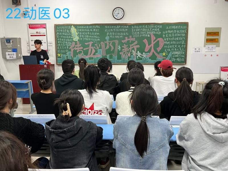 为了纪念“五四运动”104周年,弘扬 “爱国、进步、民主、科学”五四精神。动物医药学院组织22级全体团员开展主题团课学习活动,旨在带领广大团员了解百年奋斗史,学团史、知团情、强信念、践使命。