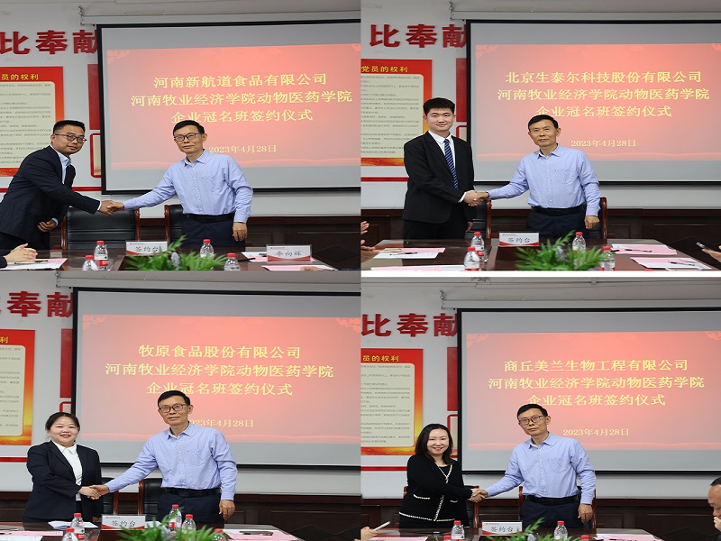 接着,动物医药学院党委书记刘永录代表学院与企业逐一签订了2022级冠名班合作协议。