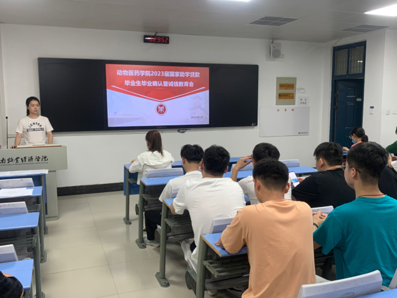 为进一步做好我院国家助学贷款的贷后管理工作,根据我校《关于做好2023届国家助学贷款毕业生毕业确认工作的通知》的要求,动物医药学院于5月16日在尚严楼A308召开了2023届国家助学贷款毕业生毕业确认暨诚信教育会。我院资助专员谷茜茜老师、段小彦老师以及2023届高校助学贷款毕业生和部分生源地贷款学生代表参加了此次会议,会议由段小彦老师主持。