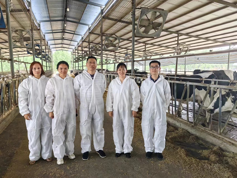 活动现场,双方在公司接待处召开了座谈会,汤阴县工信局局长吴吉宾亲临现场监督指导工作。汤阴天润牧业有限公司董事长郭银贵、总经理李风磊等领导对科技特派员罗琴一行的到来表示热烈欢迎。随后在公司总经理李风磊的带领下,科技特派员一行走访了泌乳牛舍1-4圈、犊牛舍、挤奶厅、化验室、牧草及饲料储备厅等,并就公司奶牛的饲料来源及配比、疾病监测、生鲜乳销售等方面的现状以及遇到的困难进行了交流,并针对上述情况提出合理化的建议和引导,同时进行了针对性的技术指导。