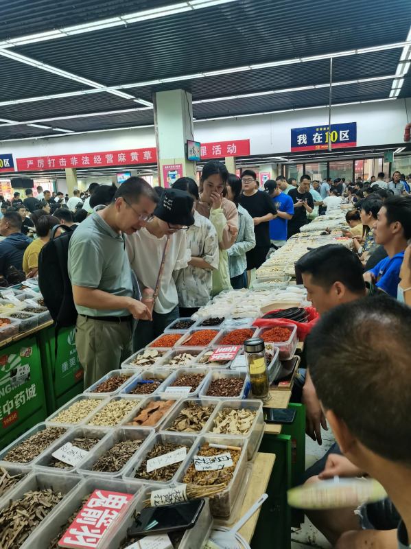 亳州是我国最大的药材集散地,有康美中药城及神农谷中药材交易中心等大型中药材交易市场,每天的交易量在亿元以上,药材种类繁多,可为中药鉴定、中药炮制、中药贸易等提供良好的现场教学环境。实习过程中,同学们走进亳州康美中药城交易中心,观摩了药材交易现场,对药材交易有了良好的感观认识;随后同学们走进不同商铺,仔细观察所见的每味药材的主要鉴别特征,边看边拍照、记录,虚心向商户和老师询问不认识的药材,并向商户了解每味药材的产地、等级、价格等信息。同学们彬彬有礼和虚心学习的态度受到商户的一致赞赏,一些商户甚至无偿赠送一些药材标本供学生学习。