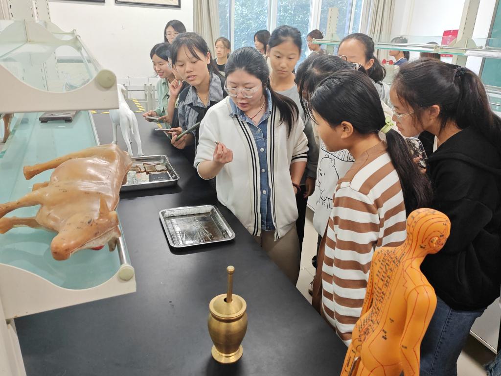活动伊始,同学们参观了教学准备实验室。随后,中兽医实验室里浓郁的中药味、琳琅满目的中药材让同学们深刻感受到了中医药文化的博大精深;现代化精密仪器更是让同学们深刻认识到中医药与实验室的有机结合为兽医学发展带来的更多可能性。紧接着,实验室助理对现代化生化科技做出侧重介绍,向新生依次介绍了数码摄像系统、多功能一体机、3D虚拟解剖仿真软件等精密仪器及先进技术。最后,实验室助理带领同学们参观了模拟手术台、发酵工艺实验室、分离干燥室等特色实验室。介绍期间,老师、学长学姐们积极热情地为新生们解答问题,鼓励新生们要亲身实践,认真对待每一节实验课,获得更多实践经验。