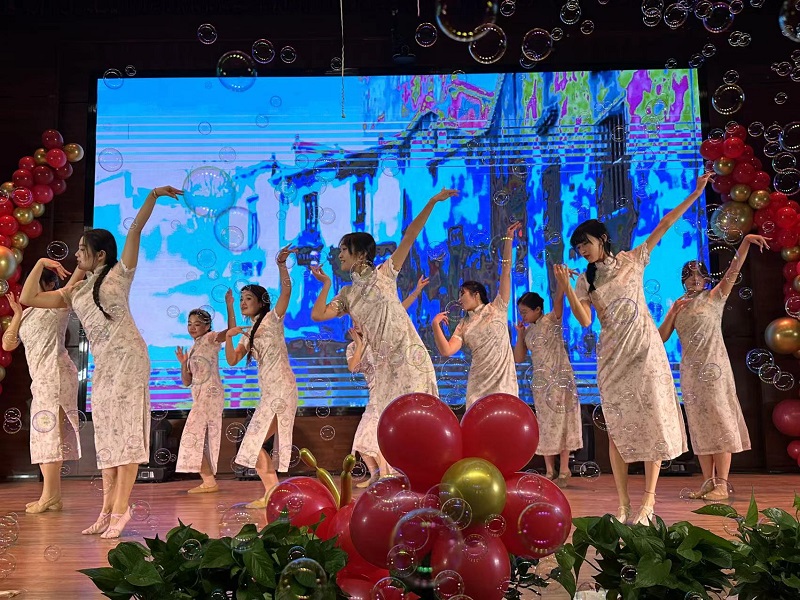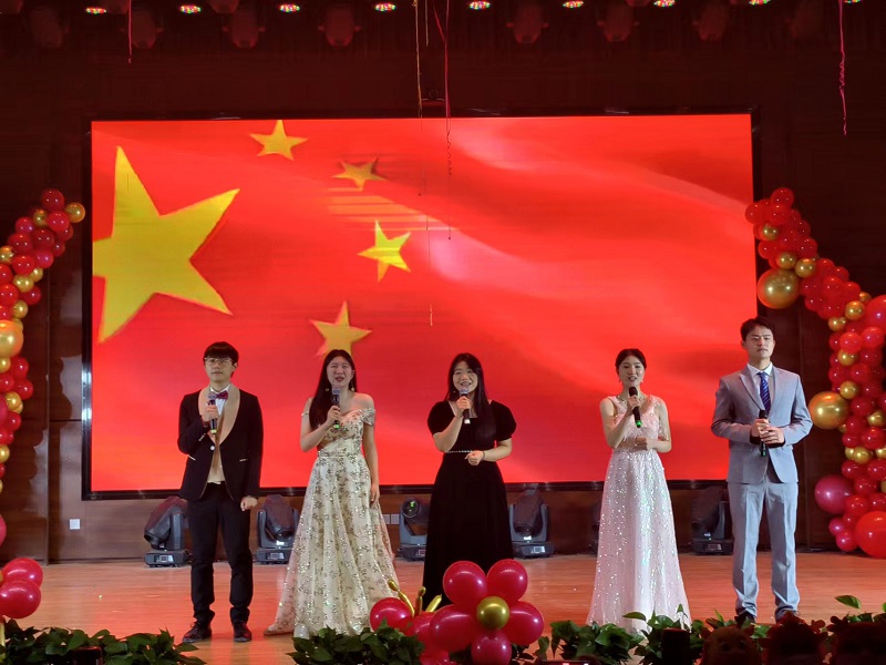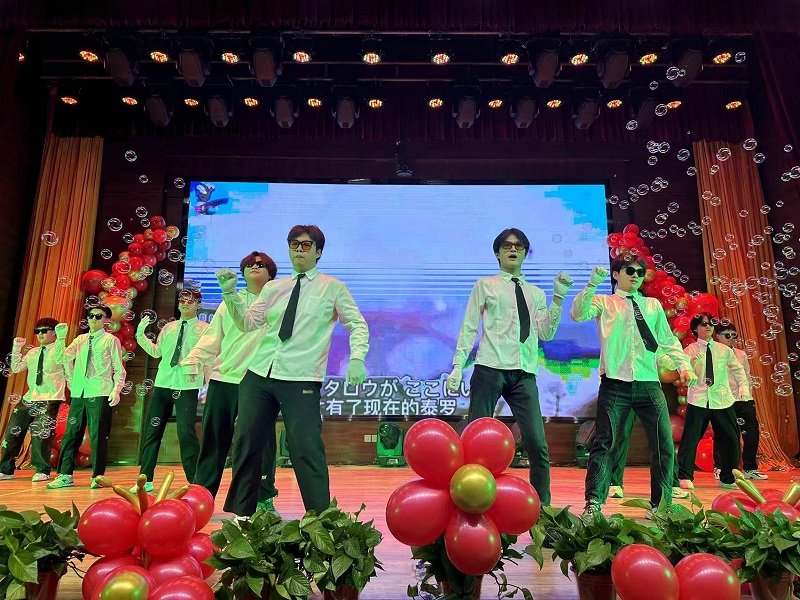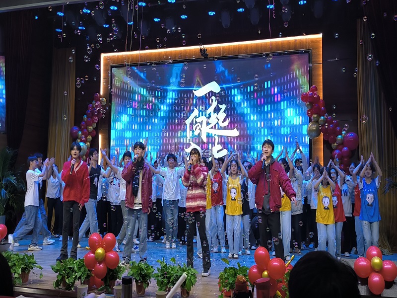 当“赴新篇”的号角响起,我们满怀豪情地展望那充满无限可能的未来。在这激昂的时刻,朗诵《百年交响》以其慷慨激昂的语调,展现了同学们对伟大祖国的无限热爱以及对美好未来的无限憧憬。随后,学院领导班子带来的合唱《大中国》,用歌声传递着对伟大祖国的赞美与祝福。那深情的旋律,如同滚滚长江般激昂,瞬间点燃了全场的热情,引发了观众们热烈的掌声和内心的共鸣。而《家有儿女》与《青苹果乐园》的师生舞蹈串烧,更是将整个晚会推向了高潮。
