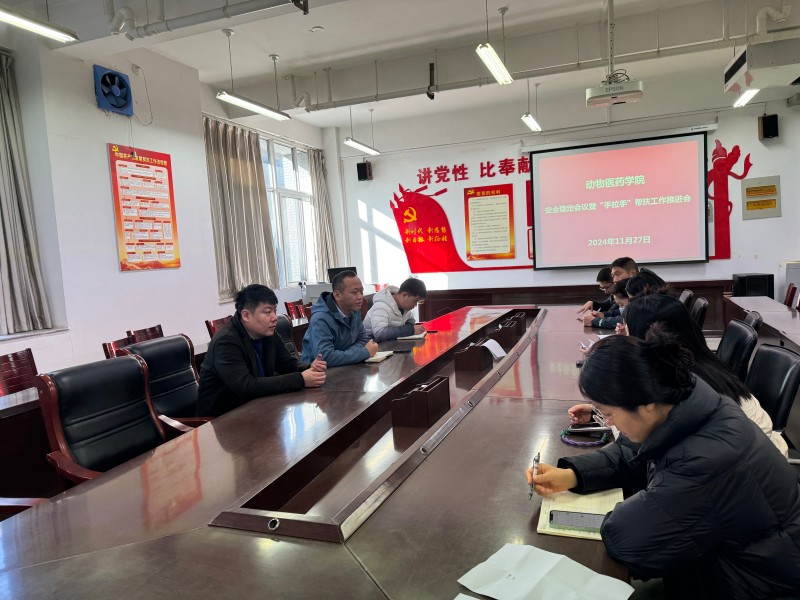 11月27日,动物医药学院在生工楼C401会议室召开安全稳定暨“手拉手”帮扶工作推进会,学院党委副书记汪洋、团委副书记闫一博、付文凯和全体辅导员参加会议。