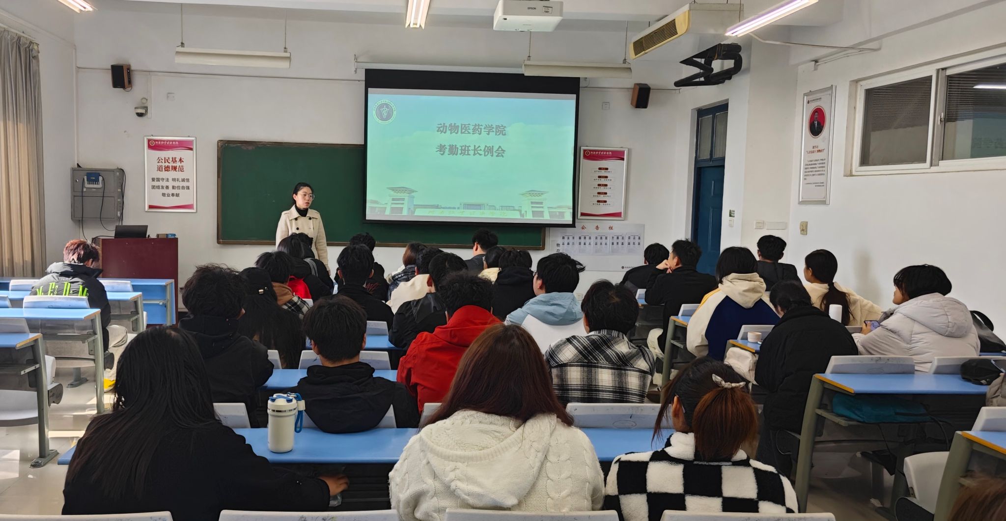 为扎实推进学院优良学风建设,营造积极向上的学习氛围,12月2日中午,动物医药学院在2号楼A201召开了考勤班长例会,院辅导员谷茜茜、自律部学生干部及各班考勤班长参加了本次会议。