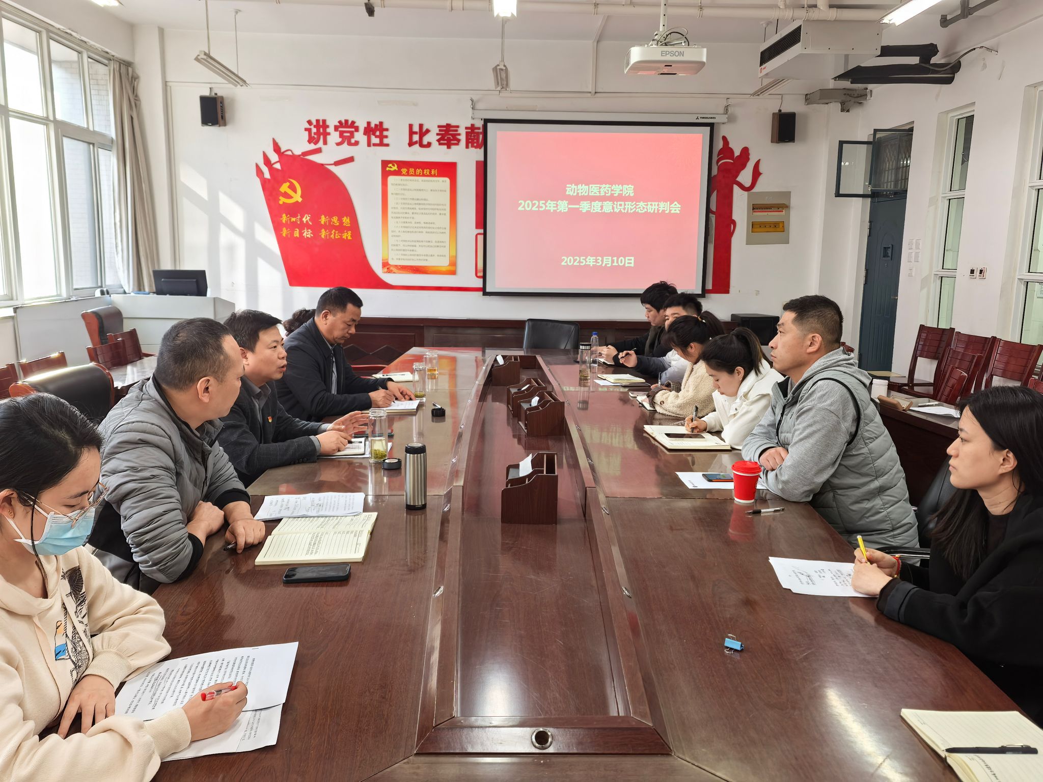 为全面把握学院当前面临的思想动态和安全稳定,动物医药学院党委于3月10日在善知楼c401召开2025年第一季度意识形态研判会。学院党委委员、班子成员及全体辅导员参加本次会议,会议由党委书记胡卫东主持。