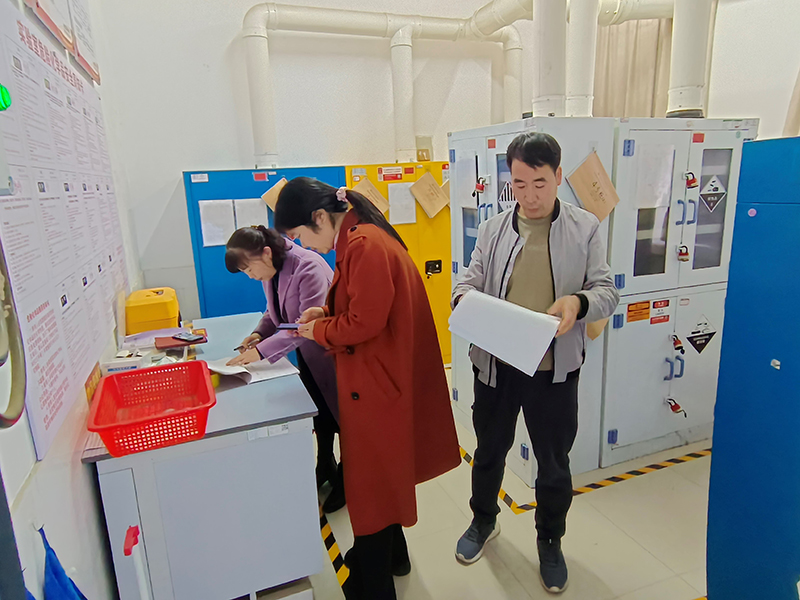 为推进我院实验室安全工作的常态化、规范化管理,确保实验室安全运转,进一步压实实验室安全管理责任,扎实推进实验室安全管理,保障教学和科研实验顺利开展,实验室各项工作安全、平稳、有序进行,2025年3月21日上午,我院对教学、科研实验室开展安全检查工作,副院长李利红、科研办公室主任李向辉、实验教学管理中心刘玲玲等参加了此次检查。