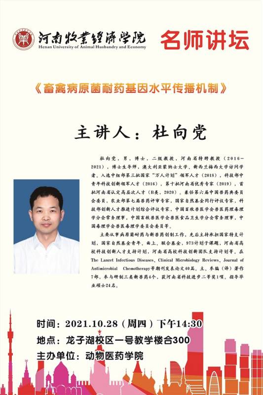 动物医药学院“畜禽病原菌耐药基因水平传播机制”名师讲坛海报