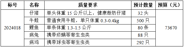 根据动物医药学院2024年度实验教学对实验用其他动物的需求,现以询价方式进行采购,欢迎符合资格条件的供应商前来报名,现将该项目采购事宜公告如下:
